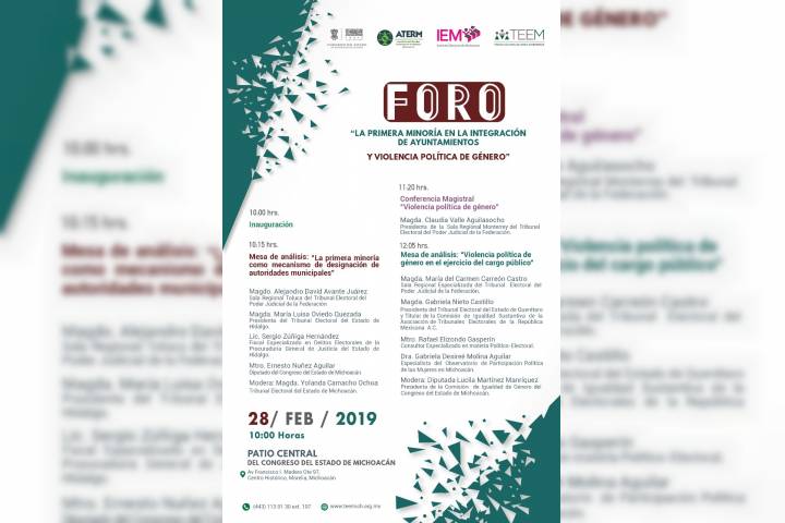 Se realizará el Foro "La Primera Minoría en la Integración de los Ayuntamientos y Violencia Política de Género"