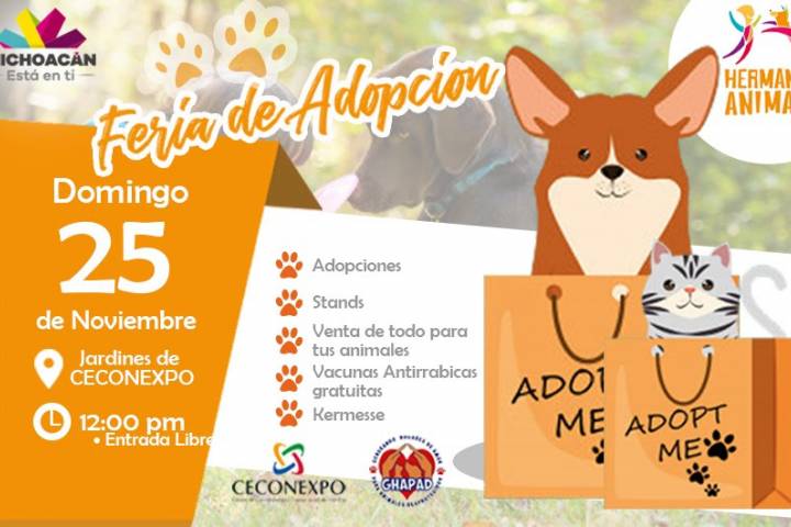 La asociación civil Hermano Animal, invita a todas y todos los michoacanos a la Feria de Adopción ...