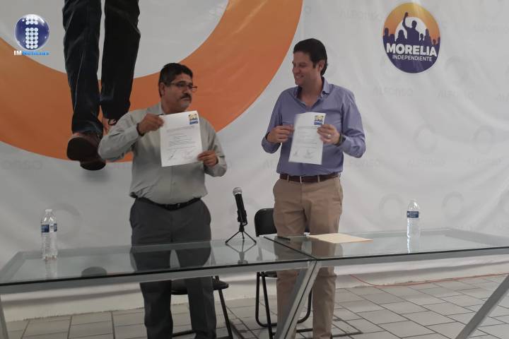 El candidato independiente a presidente municipal de Morelia, Alfonso Martínez Alcázar, y el pr...