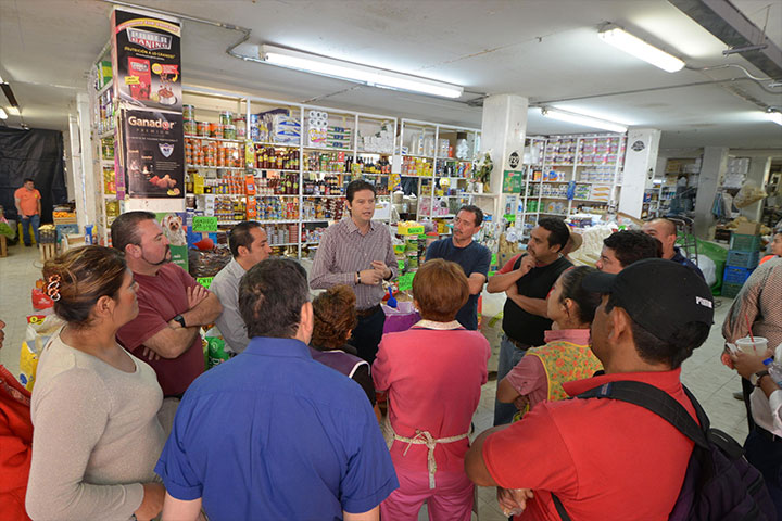 Visita Alfonso Martínez a locatarios el mercado Nicolás Bravo