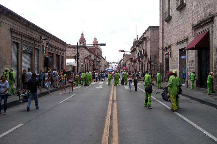 Refuerzan limpieza en primer cuadro de Morelia durante fiestas patrias