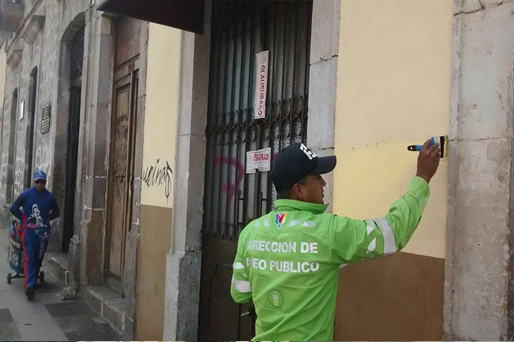 El Ayuntamiento de Morelia borra graffitis en edificios históricos