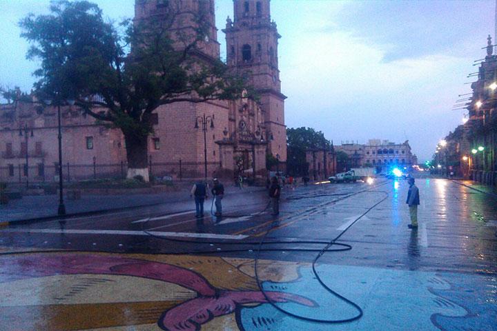 La madrugada de este domingo, personal de la Dirección de Aseo Público del Ayuntamiento de Morelia...