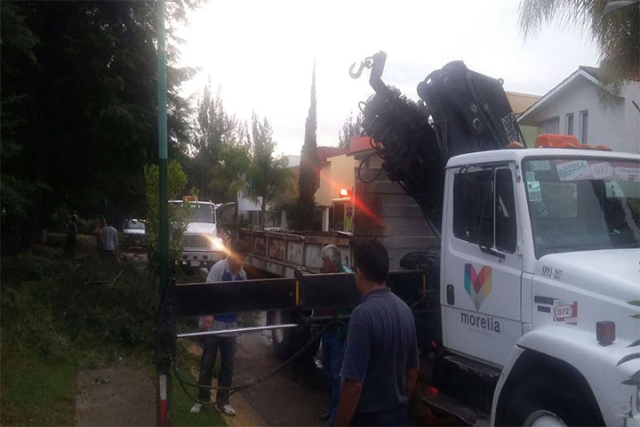 El ayuntamiento de Morelia da a conocer los daños reportados hasta las 22 horas: Caída de árbol....