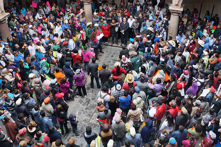 El presidente municipal, Wilfrido Lázaro Medina se reunió con locatarios del mercado Nicolás Bra...