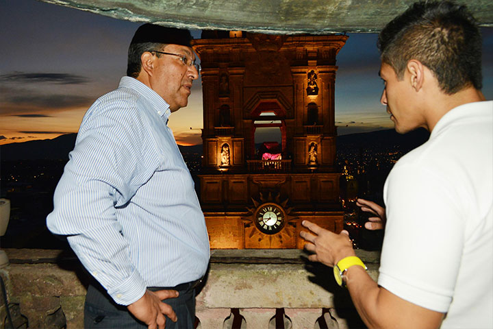 El presidente municipal de Morelia, Wilfrido Lázaro Medina, en compañía del regidor Jorge Molina ...