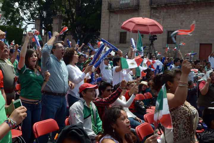 Cientos de morelianos vivieron esta tarde la pasión del futbol en la plaza Benito Juárez donde el ...