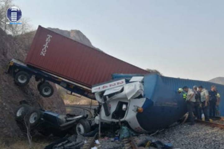 Un tracto camión cayó por un barranco de aproximadamente 30 metros de altura hacia las vías del t...