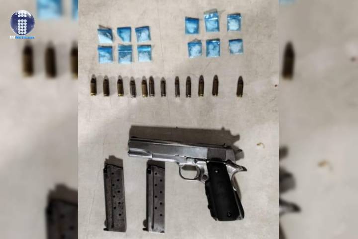 Aseguran SSP y GN a dos personas en posesión de un arma, cargadores, cartuchos y droga