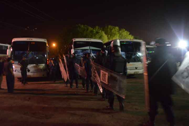 Sin que aún hayan ingresado las fuerzas policiales a recuperar los autobuses, jóvenes normalistas ...