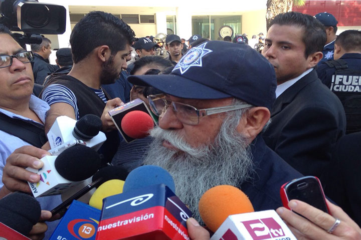 Abordado por la prensa al término de un evento de Seguridad Pública, el comandante de la Fuerza ...
