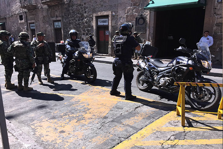 Con un cerco de seguridad de elementos de la Policía y el Ejército en el primer cuadro central de...