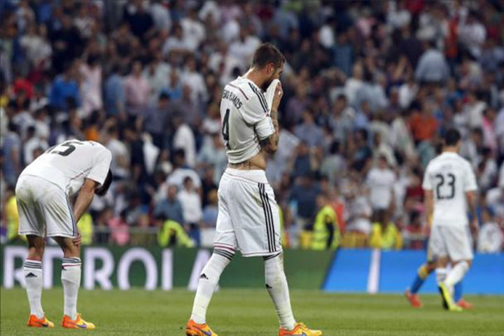 El Real Madrid renunció a muchas de las esperanzas que tenía de ganar el título al empatar (2-2) en casa con el Valencia (4º), quedando a cuatro puntos del líder Barcelona, a falta de dos fechas.