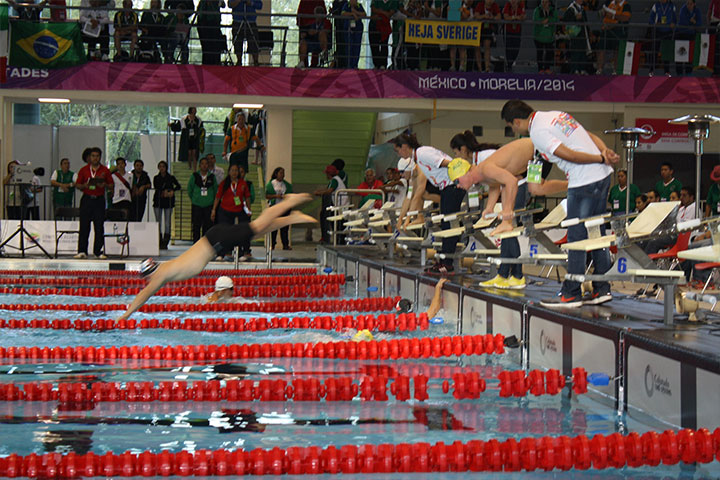 NOTICIAS 13/11/2014México se mantiene en el subliderato del VII Campeonato Mundial de Natación Downn una excelente jornada vespertina, la delegación mexicana que participa en el VII Campeonato Mundial de Natación para Personas con Síndrome de Down, consiguió dos medallas de oro y un par de bronce, durante el cuarto día de actividades en el Complejo Acuático "Medallistas Paralímpicos" de la Unidad Deportiva Morelos-Indeco. Al final, sumó 8 nuevas medallas para cumular 25 y continuar en el segundo lugar del medallero.