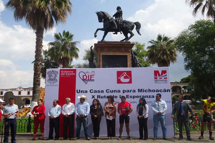 "Misión Cumplida", el ciclista michoacano Raúl Vicente Chávez García cumplió la meta en favor de la "Casa Cuna en Michoacán", tras un recorrido por 56 municipios en el estado durante la X Ruta de la Esperanza.