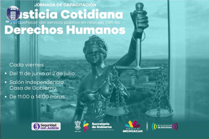 NOTICIAS 10/06/2021Impartirá Segob curso de capacitación sobre justicia cotidiana y derechos humanos Con la finalidad de dotar herramientas en materia de justicia cotidiana a las y a los servidores públicos de nivel medio, la Secretaría de Gobierno llevará a cabo la Jornada de Capacitación "Justicia Cotidiana y el Quehacer del Servicio Público en Relación con los Derechos Humanos".