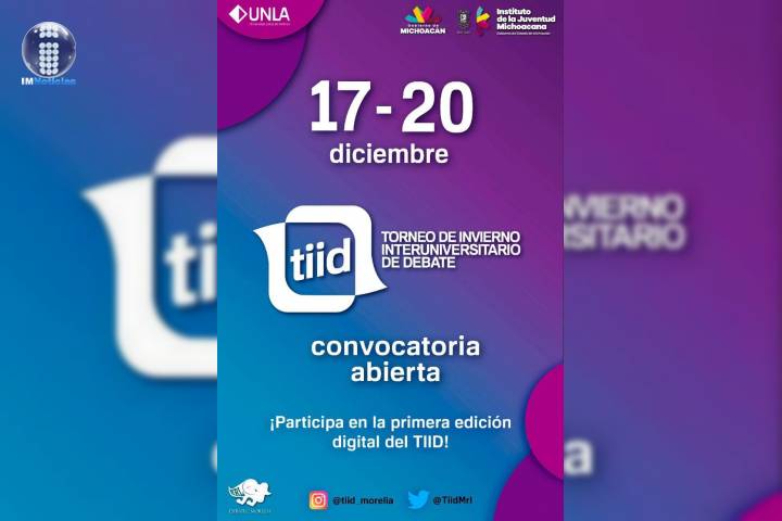 NOTICIAS 24/11/2020Invita Ijumich a participar en el Torneo de Invierno Interuniversitario de DebateEl Instituto de la Juventud Michoacana (Ijumich), en alianza con el grupo estudiantil "Debatec", del Instituto Tecnológico y de Estudios Superiores de Monterrey convocan a las y los jóvenes a inscribirse en el Torneo de Invierno Interuniversitario de Debate (TIID) 2020, el cual busca convertirse en una herramienta de empoderamiento ciudadano que permita generar un ejercicio intelectual por medio de la discusión de las ideas, a través de la op... Ver más...