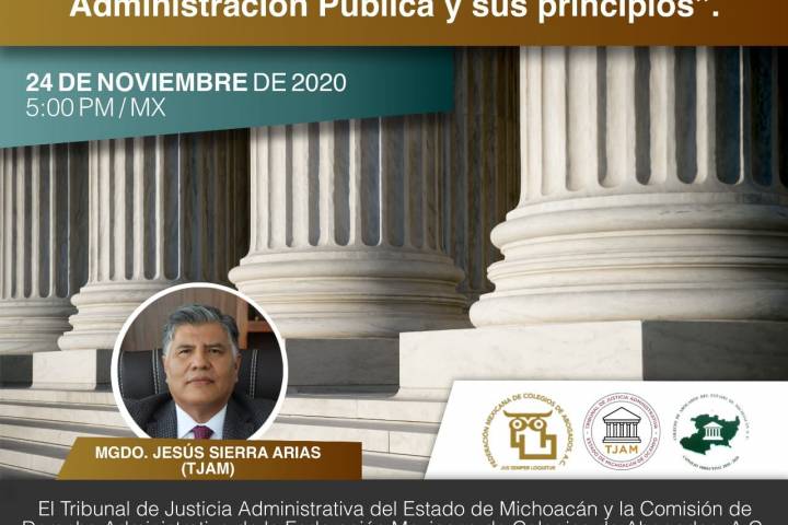 NOTICIAS 23/11/2020Invitan a conferencia sobre Función Social de la Administración PúblicaLa Comisión Nacional de Derecho Administrativo de la Federación Mexicana de Colegios de Abogados A.C., en coordinación con el Tribunal de Justicia Administrativa del Estado de Michoacán de Ocampo, buscan apoyar a la capacitación de los abogados, servidores públicos y estudiantes de derecho por lo cual invitan al público a la conferencia magistral "La Función Social de la Administración Pública y sus Principios".