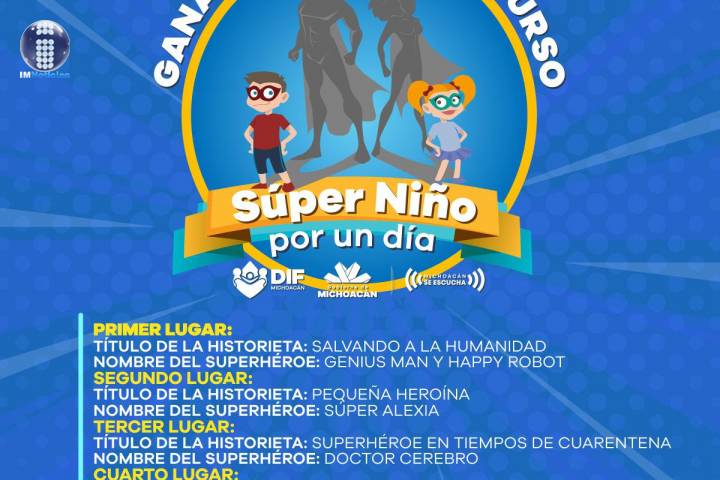 NOTICIAS 08/05/2020Premian a ganadores del concurso Súper Niño por un DÃa Con motivo del DÃa del Niño y la Niña, el Sistema para el Desarrollo Integral de la Familia, DIF Michoacán realizó diversas actividades encaminadas al aprendizaje y entretenimiento de las niñas y niños ante el periodo de aislamiento obligatoria por la pandemia por el COVID-19.
