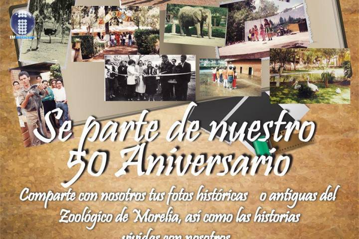 NOTICIAS 12/02/2020Convoca Zoológico de Morelia a rescatar 50 años de historia Para conmemorar su medio siglo de vida, el recinto faunÃstico invita a las y los michoacanos a participar en los festejos, enviando sus fotografÃas antiguas de alguna de sus visitas al Parque Zoológico "Benito Juárez", con la intención de seleccionar las mejores y poder ampliar el acervo fotográfico con el que se cuenta.