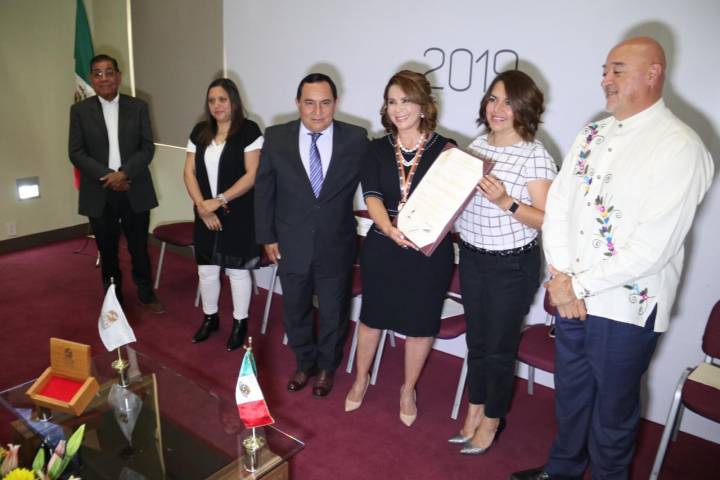 El encargado del Despacho de la Presidencia, Uble Mejía Mora, acompañado de los Consejeros, Mónica Gabriela Andrade Molina, Sonia Zavala López y Juan Guillermo Cuevas Toledo; entregó el galardón que año con año otorga el organismo ... Ver más...