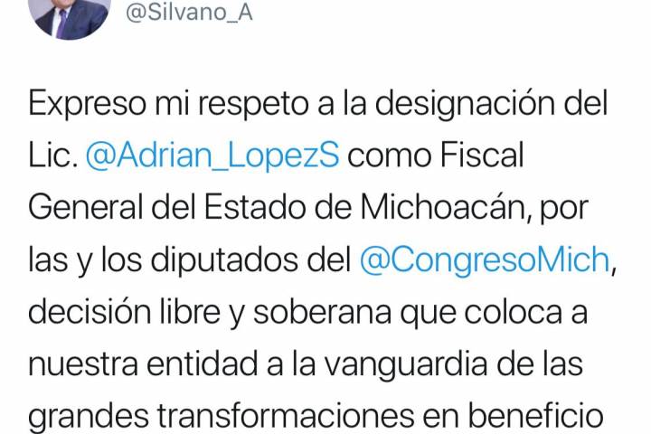 En ese sentido, expresó su respeto a la designación del licenciado Adrián López Solís como Fiscal General del Estado de Michoacán, por ... Ver más...