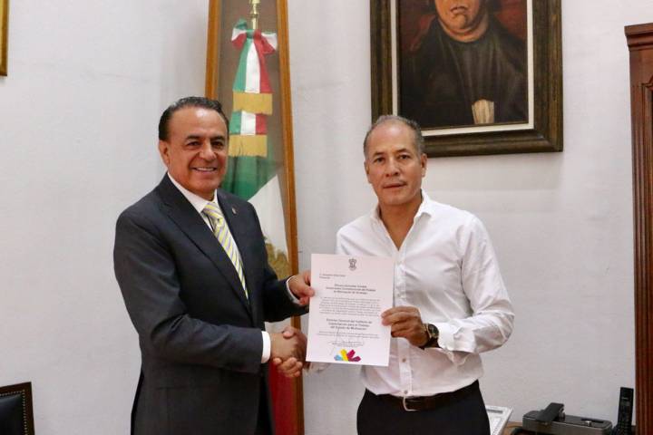 En su oficina de Palacio de Gobierno, el encargado de la polÃtica interna entregó el documento al nuevo titular de la dependencia encargada de promover la capacitación entre las michoacanas y los michoacanos.