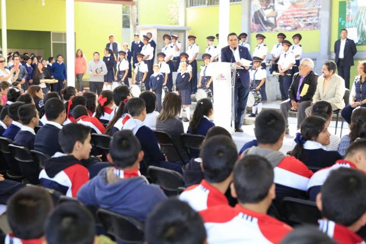 NOTICIAS 21/03/2017Cumple Gobernador obras en Secundaria Técnica No. 120 de Morelia Sólo a través de una educación de calidad y espacios adecuados, se pueden formar grandes ciudadanos, expresó el Gobernador Constitucional Silvano Aureoles Conejo al inaugurar la reconstrucción de la plaza cívica y la construcción de la cancha de usos múltiples de la Secundaria Técnica No. 120 en Morelia, acciones que tuvieron una inversión de 2.8 millones de pesos para beneficio de 789 alumnos.