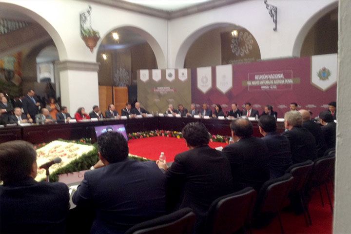 Gobernadores de 17 entidades federativas y representantes de los órganos implementadores en el país, sostuvieron una reunión de trabajo con la finalidad de establecer acuerdos que permitan cumplir con la Reforma Constitucional de 2008.
