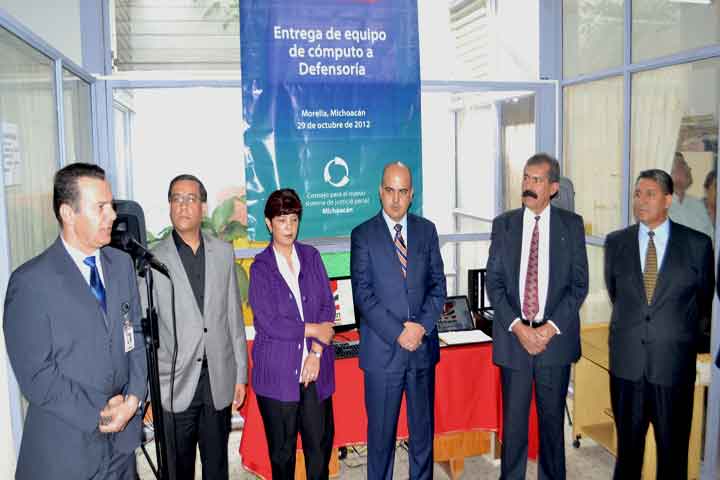Más de un centenar de equipos de cómputo fueron entregados hoy a la Defensoría de Oficio del Estado, como parte de las gestiones realizadas por el área de Tecnologías de la Información del Consejo para el nuevo sistema de justicia penal para acceder al recurso federal otorgado en 2012 vía subsidio para la implementación de la reforma en el estado de Michoacán.