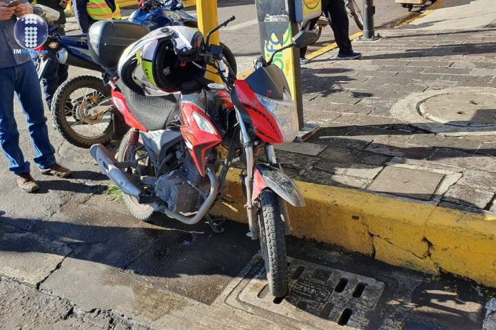 Un automóvil y una motocicleta protagonizaron un choque sobre la avenida Madero Poniente de la ciudad de Morelia, a consecuencia de ello el conductor de la moto quedó lesionado y unos policÃas municipales le otorgaron los primeros auxilios.