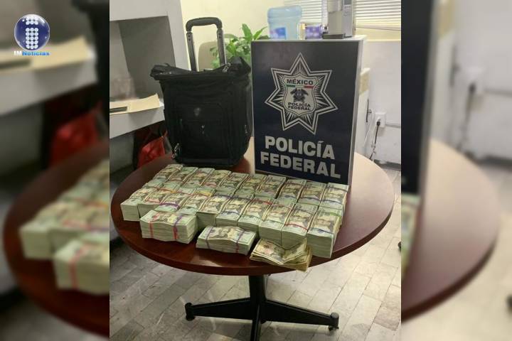Integrantes de la Policía Federal aseguraron más de 216 mil dólares en efectivo en el Aeropuerto Internacional de la Ciudad de México (AICM).