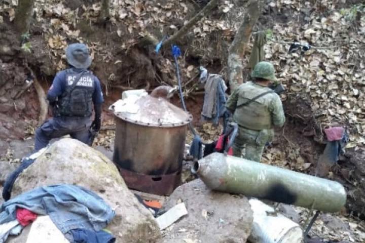 La acción operativa tuvo lugar en una zona montañosa, entre las comunidades de El Devanador y San Antonio Villalongín, en la cual los elementos policiales y castrenses ubicaron el laboratorio.