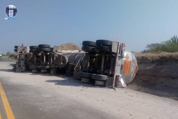 Una pipa de doble remolque cargada con cientos de litros de gasolina volcó en la autopista "Siglo XXI" y tuvo un derrame, a consecuencia del percance hubo un lesionado, confirmaron las autoridades de Protección Civil.
