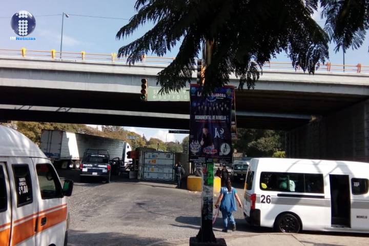 Un tráiler aguacatero se accidentó debajo del puente vehicular de la Avenida Morelos Norte en las inmediaciones del Tecnológico Morelia, sin que afortunadamente hubiera víctimas que lamentar, dijeron fuentes policiacas.