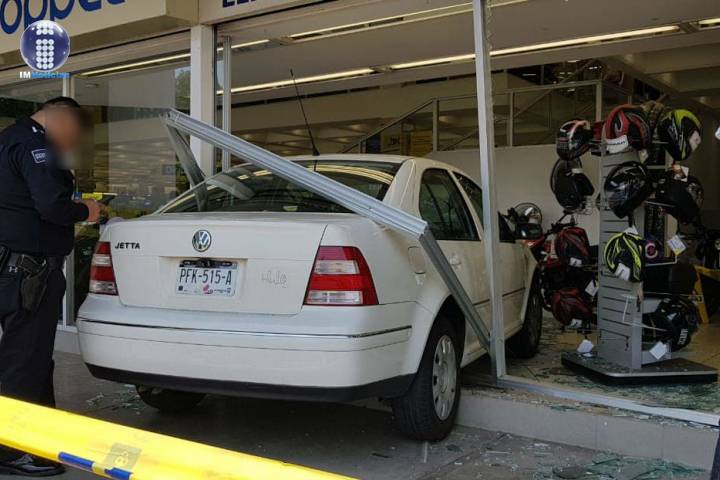 Un automóvil se estrelló contra el aparador de una tienda departamental en el municipio de Zamora.