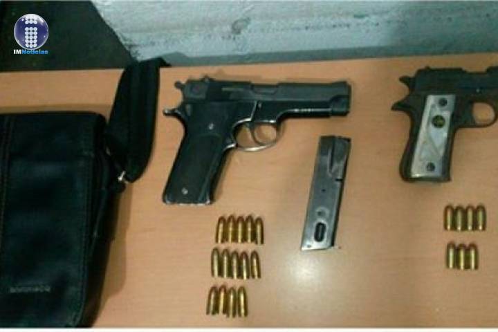 El indiciado dijo llamarse Alejandro D., alias "El Dimas", de 34 años de edad, mismo que traÃa consigo dos pistolas: una calibre .9 milÃmetros y otra calib... Ver más...
