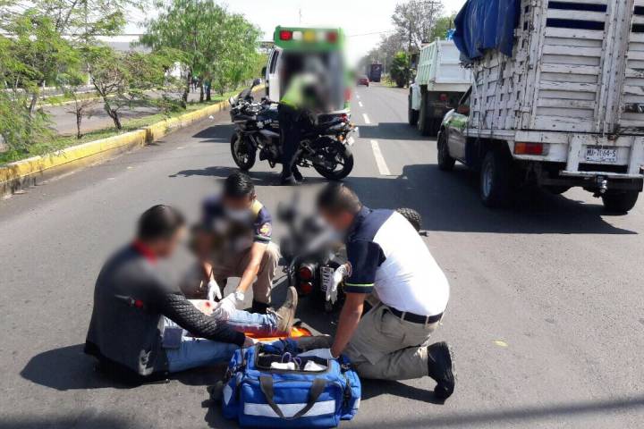 El siniestro se registró en la avenida Madero Norte, justo a la altura del hotel Jericó, lugar donde resultaron lesionados Jorge Luis R., B., de 23 años de edad, vecino de la calle Ocupación de Tehuacan, de la colonia Generalísimo Morelos, quien conducía una motocicleta Italika color naranja con negro, con placa PJT4J de Michoac... Ver más...