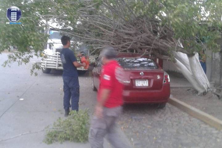Un árbol cayó sobre un vehículo que estaba estacionado en las calles de la colonia Palmira, ubicada en esta ciudad de Apatzingán. Afortunadamente el accidente no dejó víctimas que lamentar.