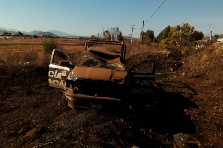 NOTICIAS 30/03/2018Vuelca una patrulla de la Policía Michoacán, hay 2 agentes heridosUna patrulla de la Policía Michoacán volcó en esta población de Purépero, a consecuencia del accidente dos elementos quedaron lesionados, se conoció en la labor noticiosa.