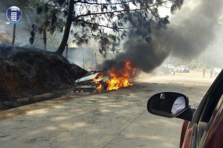 NOTICIAS 23/03/2018Vehículo se quema tras accidente en Uruapan