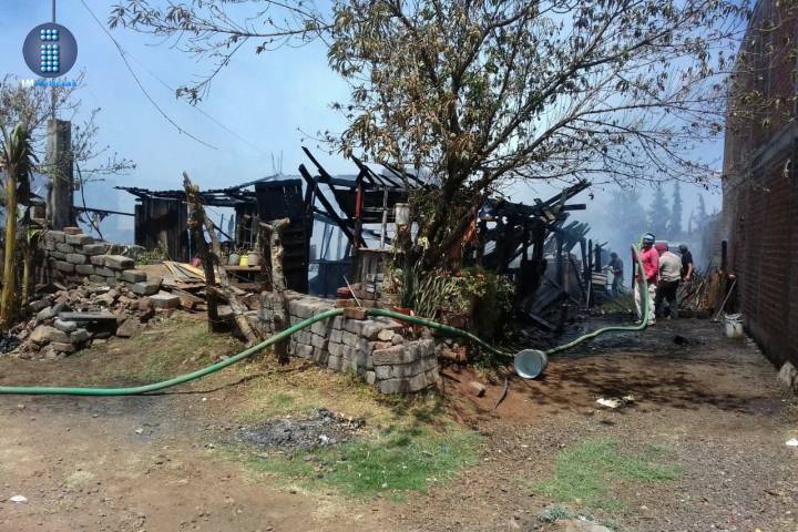 Calcinada acabó una casa de madera y láminas de cartón en la colonia Las Peñas, correspondiente la cabecera municipal de Acuitzio del Canje, esto al incendiarse, indicaron fuentes policiales y de rescate.