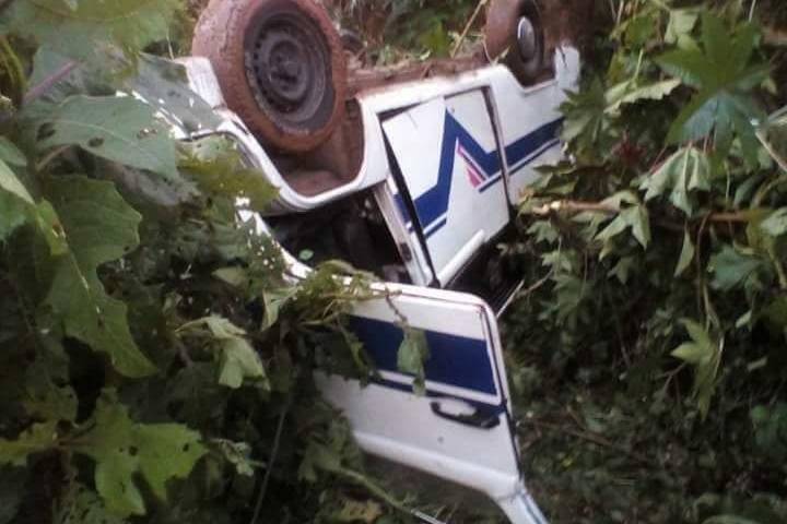 En un desnivel cubierto de maleza fue hallada una combi de la Ruta Morada, la cual estaba volcada y abandonada. En el lugar no había personas heridas, comentaron rescatistas y policías.