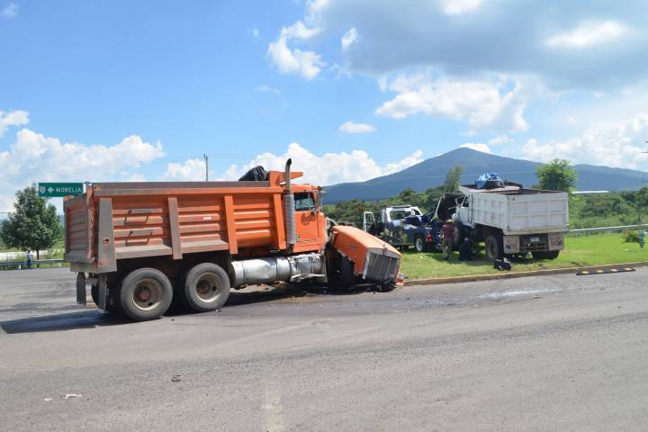 Dos camiones de carga tipo torton se impactaron en un crucero de la Salida a Quiroga, donde entorpecieron la circulación de oriente a poniente.