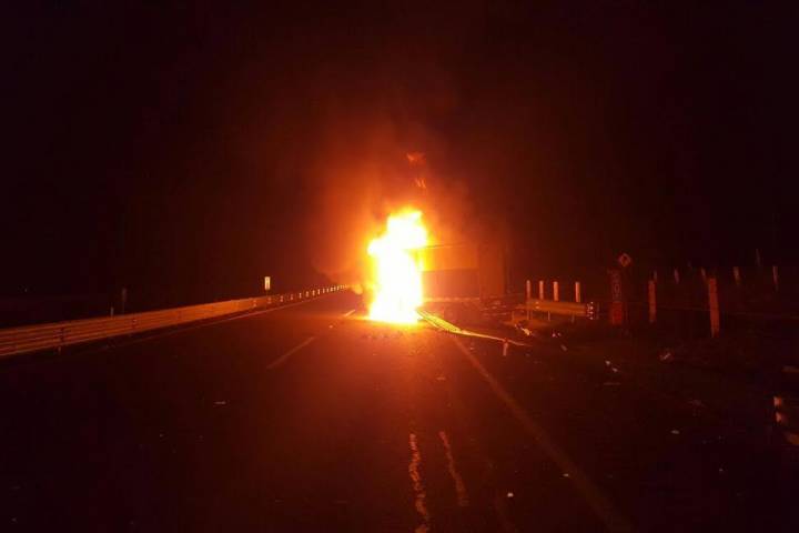 Una camioneta que se impactó contra una banda de contención terminó incendiada en la carretera Atlacomulco MaravatÃo, durante las primeras horas de este sábado.