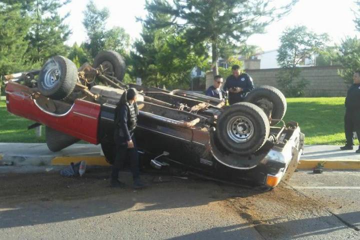 Dañada acabó una camioneta al volcar sobre la Avenida Montana Monarca, pero afortunadamente el conductor resultó ileso y fue auxiliado por rescatistas, así como por patrulleros de la Secretaría de Seguridad Pública.