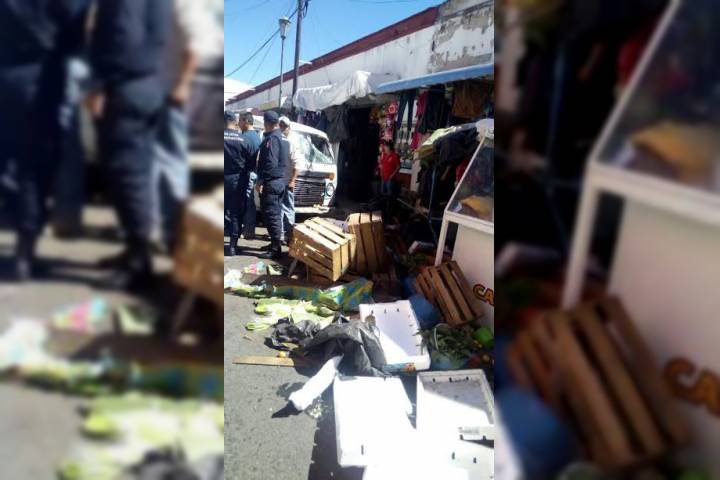 NOTICIAS 20/02/2017Chofer de combi sufre infarto y su unidad se estrella contra varios puestos de un tianguis