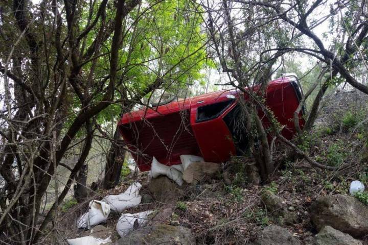 Seis personas, en su mayoría de la tercera edad, resultaron lesionadas de consideración, luego de que la camioneta en que viajaban se quedara sin frenos en una prolongada pendiente y el conductor se proyectará contra un talud, terminando sobre su toldo.