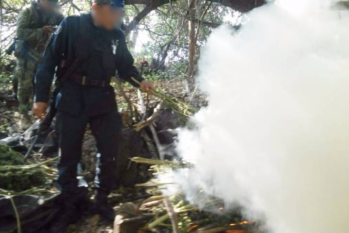 Las autoridades estatales y federales realizaban patrullajes y recorridos pie a tierra para la prevención de delitos, cuando a la altura de Acahuato, localizaron un terreno con una superficie aproximada de 400 metros cuadrados.