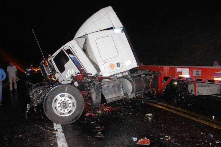 Un trailero quedó malherido después de que su unidad chocara por alcance contra otro tractocamión. La cabina del automotor donde iba el lesionado terminó hecha pedazos.